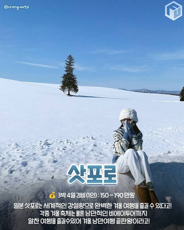 삿포로 -3박 4일 경비 (1인) : 150 ~ 190 만원