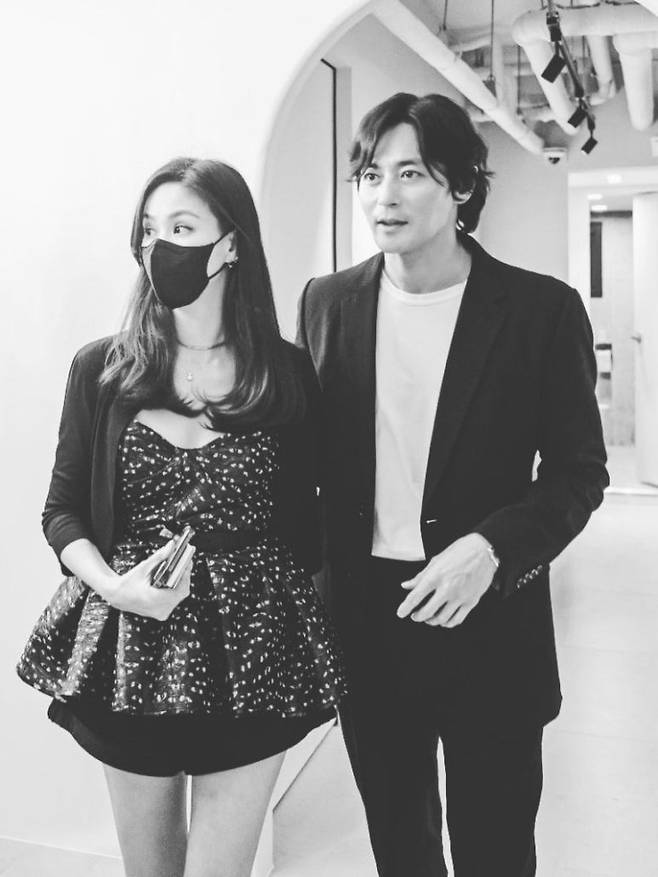 블랙 컬러 상의에 돌체앤가바나의 플라워 패턴 원피스를 매치한 스타일은 단정하면서도 강렬한 인상을 남겼다.