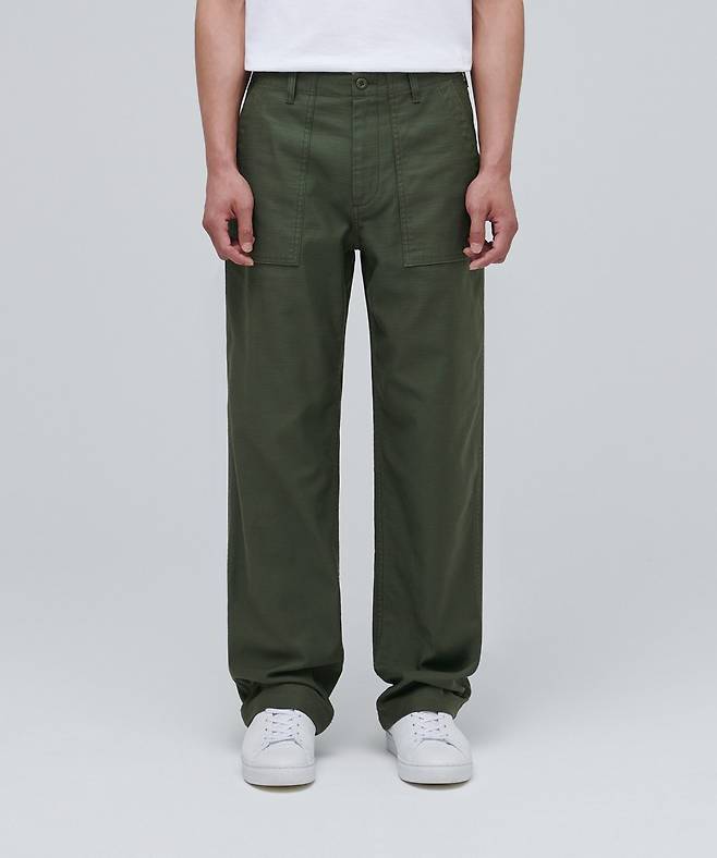 퍼티그 팬츠의 기원은 명확하다. 1960년대 미군이 즐겨 입었던 작업복. 많은 패션 브랜드가 60년 전의 원형을 미묘하게 비틀며 신제품을 선보이고 있다. 최근 퍼티그 팬츠 유행은 무신사 스탠다드의 힘이 크다. 4만 원대 제품을 출시했다. 앞서 말한 디테일이 잘 구현된 제품으로, 입어보면 퍼티그 팬츠 특유의 까끌까끌한 촉감이 만족스럽다. 압도적인 가성비를 자랑하기 때문에 퍼티그 팬츠를 경험하고 싶은 사람에게 좋은 선택지다.