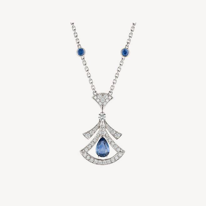 이탈리안디바스 드림 오픈워크 네크리스는 18kt 화이트 골드 소재에 페어 쉐입 사파이어 1개,