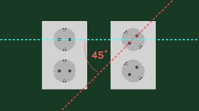 전자기기를 사용하기 위해서는 콘센트에 플러그를 꽂아야 합니다. 근데 콘센트의 구멍 방향이 수평(· ·)이 아닌 45도(。˚)(/)로 기울어져 있다 보니 콘센트의 구멍 방향을 확인하지 않고 꽂으면 한참을 헤맬 수 있습니다.