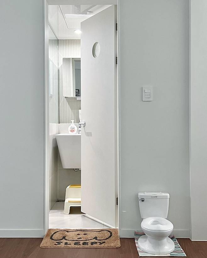 하지만 유리컵, 도자 재질의 그릇들은 타일에 떨어지는 순간 산산조각이 나서 뒤처리가 힘들고 혹시나 아이가 밟을까 봐 걱정이 되더라고요. 혹여나 물기 있는 바닥에 넘어지지 않게 항상 물기를 닦아두고 아이에게도 안전에 대해 알려주니 사고 없이 잘 지내고 있어요.