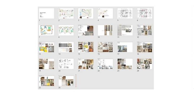 철거 전까지 매일매일 수십 번 수정된 PPT에는 공간별 스타일과 기존 가구와 새로 들어올 가구, 가전 배치를 해보며 미리 공간 활용을 예상해 볼 수 있었고 알맞은 곳에 필요한 공정과 자재들이 잘 들어 갔는지도 비교할 수 있어서 유용하게 사용했어요.