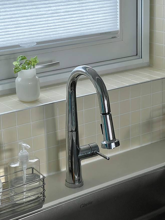 시스템 주방 창은 단열 부분에서는 취약하다고는 하셨지만 예산안에서 원하는 디자인을 하고 싶어서 결정했어요. 확실히 이중창 샤시보다는 단열에는 약하긴 하지만 작은창이라 체감상 크게 느껴지진 않아요. 문을 열고 닫을 때 힘을 줘야 하는 불편함은있어요.