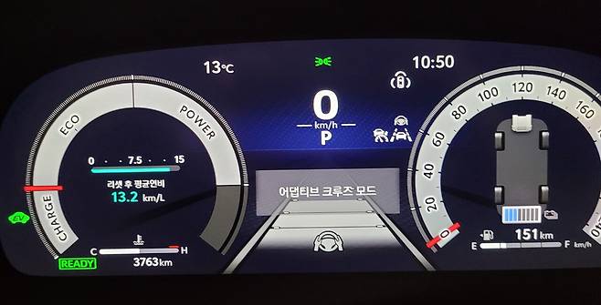 시승을 마치고 최종적으로는 13.2km/L가 나왔다. 차량 무게와 21인치 타이어를 감안하면 꽤 좋은 편이었다. 만약 연비에 중점을 두는 운전자라면 복합연비 17.2km/L인 하위 트림 2.5L 하이브리드를 선택하는 것이 좋을 듯하다.
