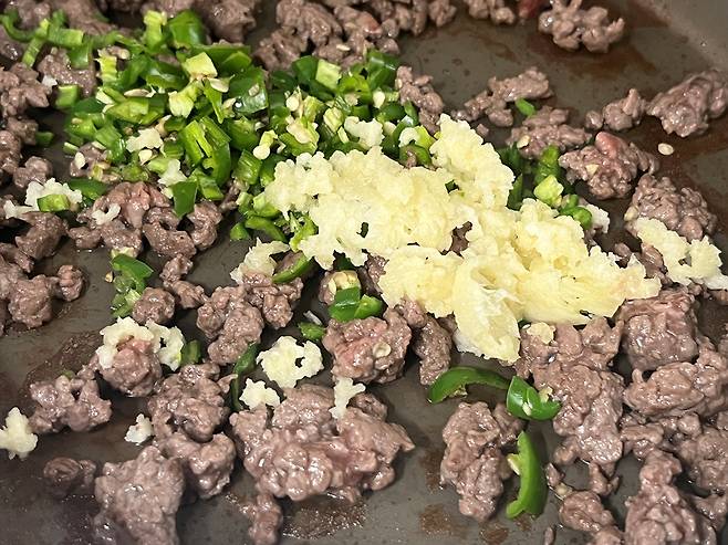 다진 소고기는 키친타월로 핏물을 최대한 제거한 뒤 팬에 약불로 볶으세요.