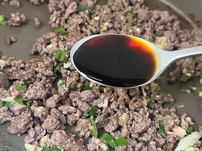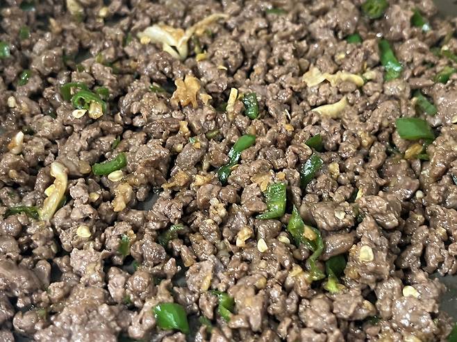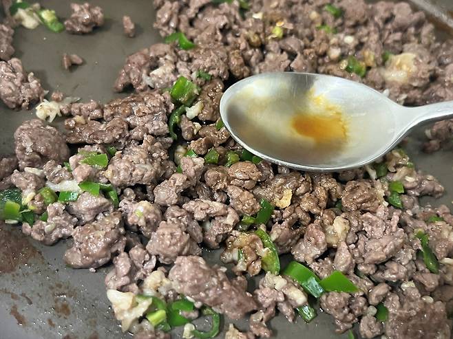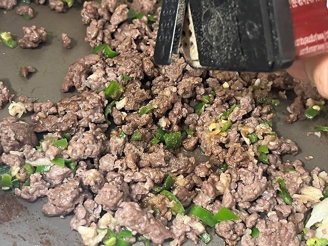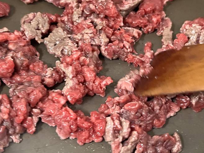 다진 소고기는 키친타월로 핏물을 최대한 제거한 뒤 팬에 약불로 볶으세요.
