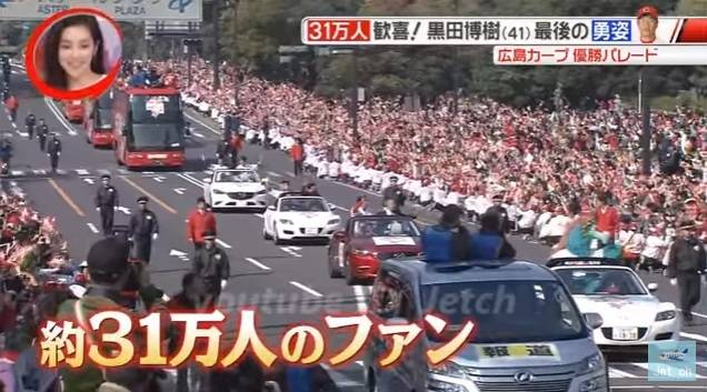 모인 이유는 퍼레이드 때문이다. 25년 만의 우승(센트럴 리그)을 축하하는 자리였다. 도심을 관통한 행렬의 목적지가 있다. 그들의 홈구장 마쓰다 스타디움이다.