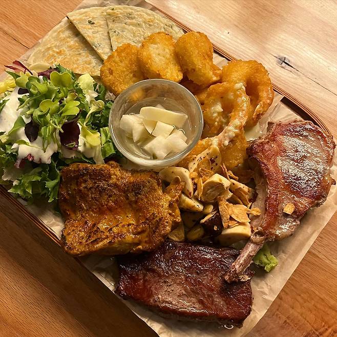 옥상 미트 시그니쳐 55,000원 문어삼합 38,000원