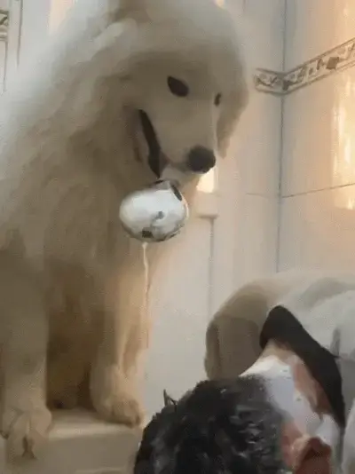 어느 날, 한 네티즌이 집의 사모예드를 불러 샤워기를 가져오도록 했습니다.