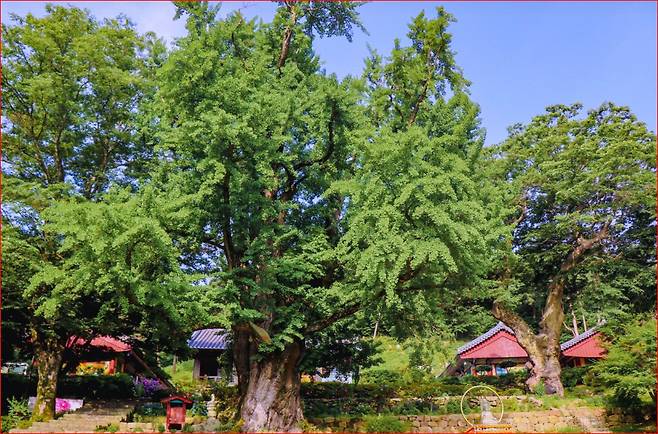 계절마다 변하는 은행나무의 풍경은 그 자체로 한 편의 그림 같습니다. 봄에는 푸른 새싹, 여름에는 짙은 그늘, 가을이면 황금빛 은행잎이 산사를 덮고, 겨울에는 고요히 눈을 이고 서 있는 자태가 인상적입니다.
