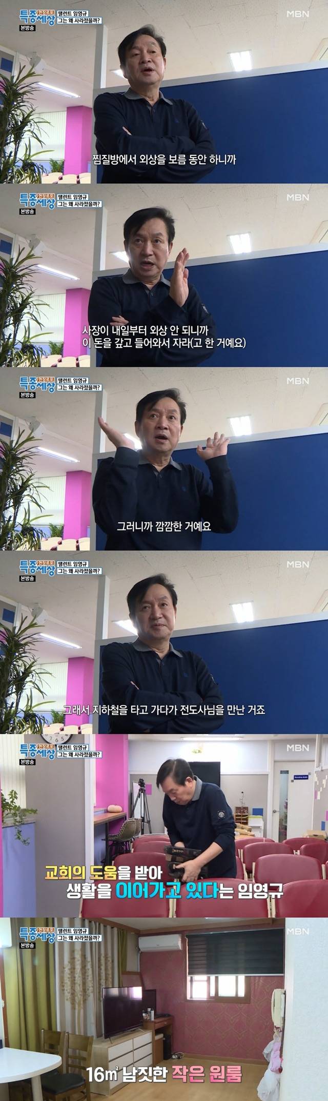 건물주의 배려로 반값에 원룸에 거주 중이며, “지금의 작은 방이 내겐 대궐”이라고 말하며 웃었다.
