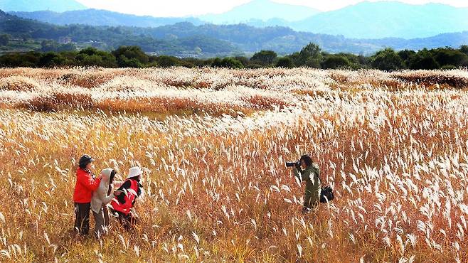 은빛 억새 물결이 일렁이는 비내섬은 그 자체로 자연이 준 선물 같은 공간이다.