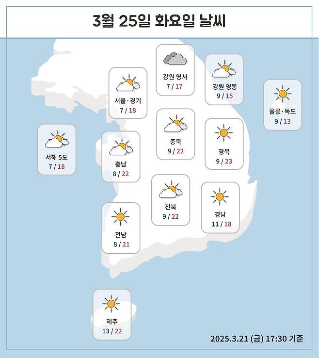 전국 대부분이 대체로 맑고