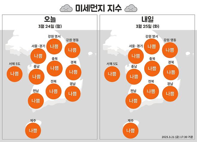 전국 공기질이 나쁩니다.