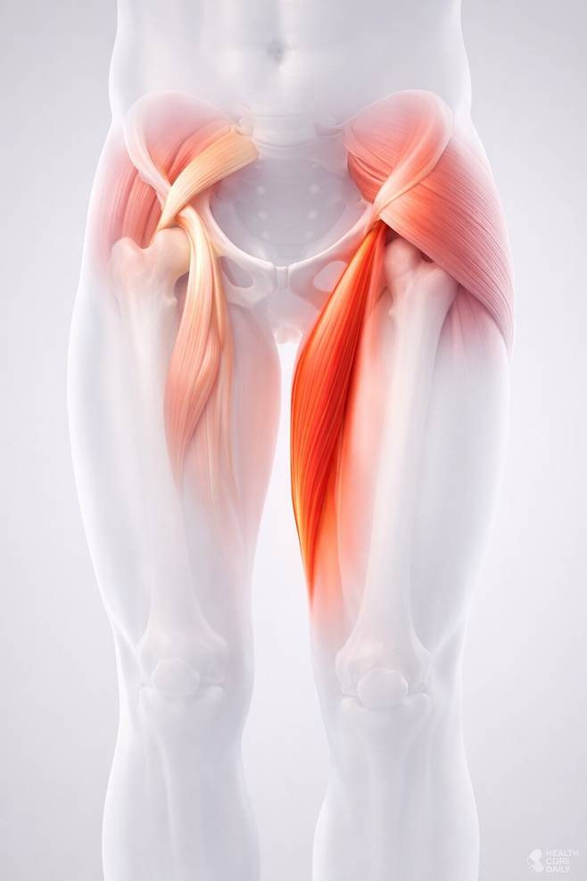 내전근은 골반 깊숙한 근육들과 기능적으로 연결돼 있으며, 특히 장요근과의 연관성이 크다. 장요근은 척추와 골반을 잇는 핵심 근육으로, 복부 내부 장기와 가까운 위치에 있다.
