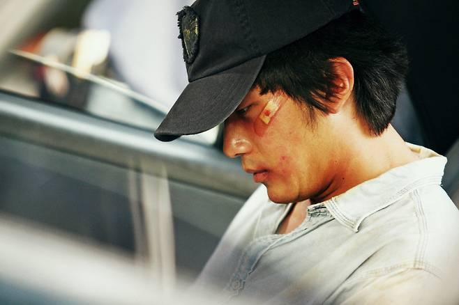 -석재소에서 경찰과 함께 시신을 찾던 중호가 경찰들에게 붙잡히다가 차안에서 탈출하는 장면.