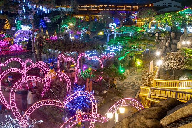 이곳에서는 폭포정원과 플라워정원 등 다양한 사진 명소에서 추억을 남길 수 있는데요. 크리스마스 장식으로 꾸며진 이곳은 겨울 여행지로서 더할 나위 없이 낭만적인 풍경을 자랑하죠.