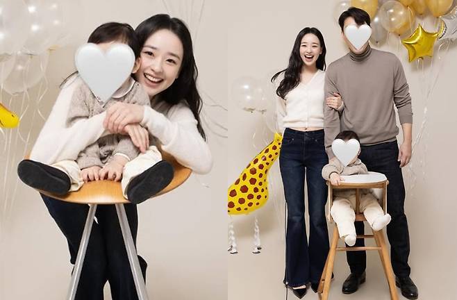 남편과 아이 역시 뉴트럴 톤의 컬러를 맞춘 감각적인 패밀리 스타일링으로 따뜻한 분위기를 완성했습니다.