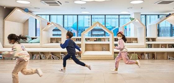 공간을 디자인한 전이서 건축가(전 아키텍츠 건축사사무소 대표)는 처음 기부채납 받았을 당시 복도와 방으로만 구성됐던 공간을 다 틔웠다. 건축가는 아파트에서 태어나 다른 형태의 공간에 대한 경험이 없는 아이들을 위해 작은 집과 구름방, 캠프방 등 아이들에 맞춰 스케일이 작으면서 높낮이가 다른 입체적인 공간을 만들었다. 전이서 소장은 “굳이 정적인 공간과 동적인 공간으로 경계를 나누지 않고 아이들이 뛰어다니며 놀다가 옆의 계단 도서관으로 쏙 들어가 책도 보고 누울 수 있게, 사용자인 아이들이 원하는 대로 공간을 쓸 수 있게 설계했다”고 설명했다.
