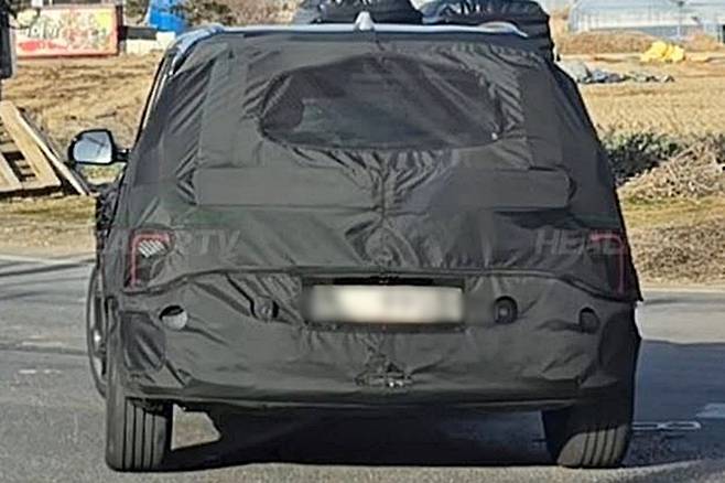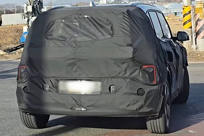 후면부는 최신 기아 SUV들과 통일감을 이루는 테일램프 배치가 특징이다. 후진등은 EV3, EV4처럼 범퍼 하단 중앙에 위치해 시각적으로 무게감을 낮췄으며, 위장막 사이로 드러난 범퍼와 리어램프 그래픽은 콘셉트카의 정체성을 거의 그대로 유지하고 있는 것이 확인됐다.