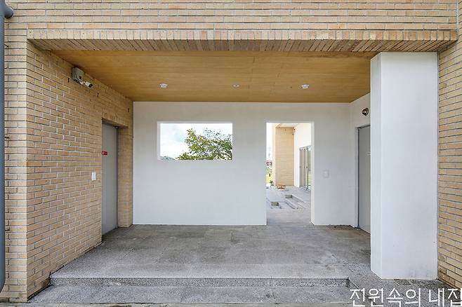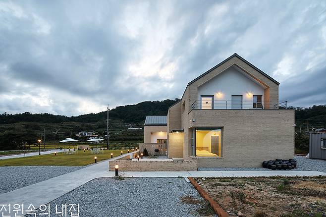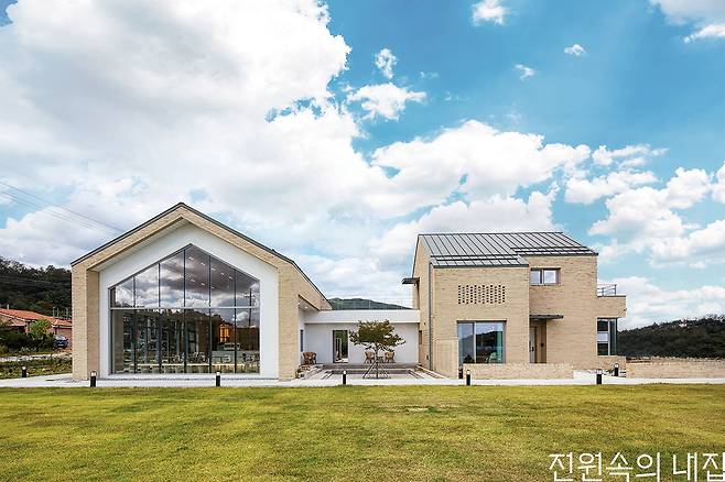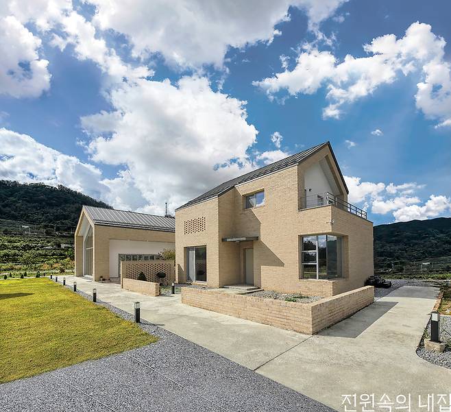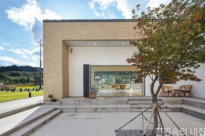 경상북도 영주시 시내에서 차로 20분 정도 떨어진 조용한 마을, 화사한 빛을 머금은 두 동의 벽돌집이 지나가는 이들의 눈길을 끈다. 손수 만든 떡과 음료를 판매하는 카페, ‘연화’와 카페를 운영하는 건축주 김도영 씨의 집은 중정을 가운데 품고 서로 닮은 모습을 하고 있다.