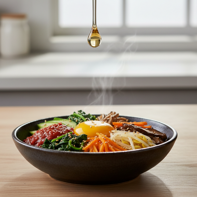 그래서 들기름은 무조건 생으로! 비빔밥, 나물무침, 미역국 완성 후 한두 방울이 딱입니다.