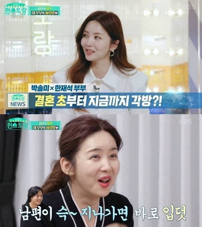 금슬 좋은 부부의 모습을 보였지만, 박솔미는 "결혼해서 지금까지 각방을 쓰고 있다"고 밝혔는데요.