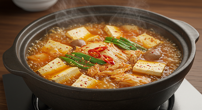 김치찌개 속 채소와 단백질을 먼저 먹고, 밥은 마지막에 소량만 먹으면 혈당 상승을 줄일 수 있습니다.