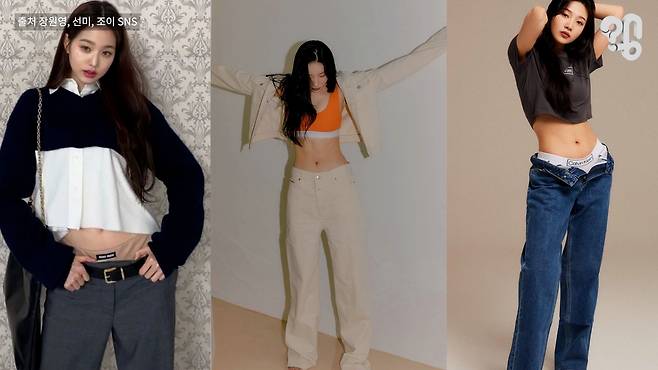 가장 트렌디한 옷을 입는 아이돌 연예인들을 보니, 정말 2000년대 초반에 유행한 벨벳 트랙 셋업을 입은 제니와 리헤이, Y2K 패션의 대표 아이템인 로우라이즈를 입은 장원영, 선미, 조이를 찾을 수 있다.