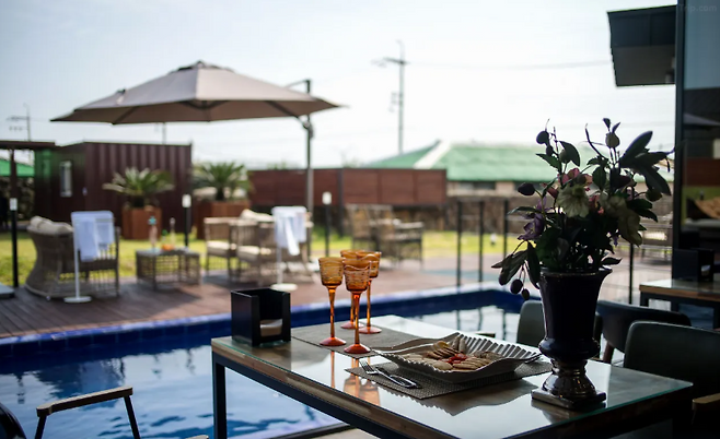 이곳의 매력 중 하나는 바로 풀장입니다. 개인 풀장은 물론이고, 넓은 정원도 있어서 가족 단위로 오기에도 딱 좋아요. 풀에서 노는 아이들을 보며 한적한 제주 바다를 감상할 수 있다는 게 참 특별하죠. 게다가 개인적으로도 사용할 수 있는 넓은 테라스는 자연과 함께하는 편안한 휴식을 선사해줍니다. 테라스에서 바다를 바라보며 커피 한잔, 그 순간만으로도 진정한 힐링을 경험할 수 있답니다.