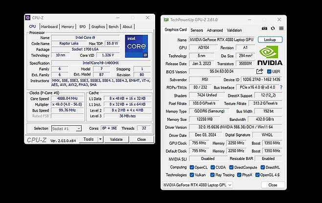 삼성전자 오디세이 G8 모니터와 함께할 노트북인 MSI 벡터17 HX A14V 제품의 스펙입니다.