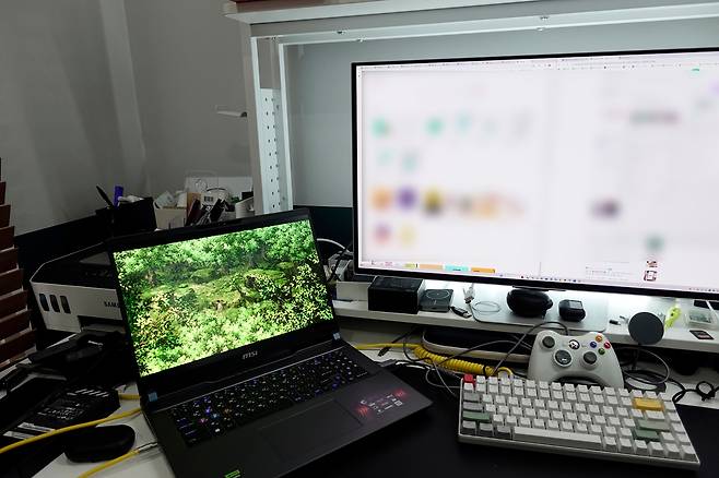 이와더불어서 4k 해상도에서 60hz 이상의 주사율을 보여주기 위해서 함께 사용된 게이밍노트북은 MSI 벡터 17인치 노트북을 사용했습니다. 단독적으로도 사용이 가능한 게이밍 모니터이지만, 자체 성능이 워낙 좋기 때문에 데스크탑 대용으로 사용하기에도 적합한 제품입니다.