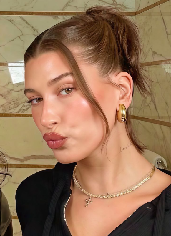커다란 선글라스와 골드 액세서리가 완벽하게 조화를 이루면서, 한층 더 우아한 무드를 연출하고 있어. 이 모든 스타일을 관통하는 한 가지 포인트? 바로 골드 귀걸이야.