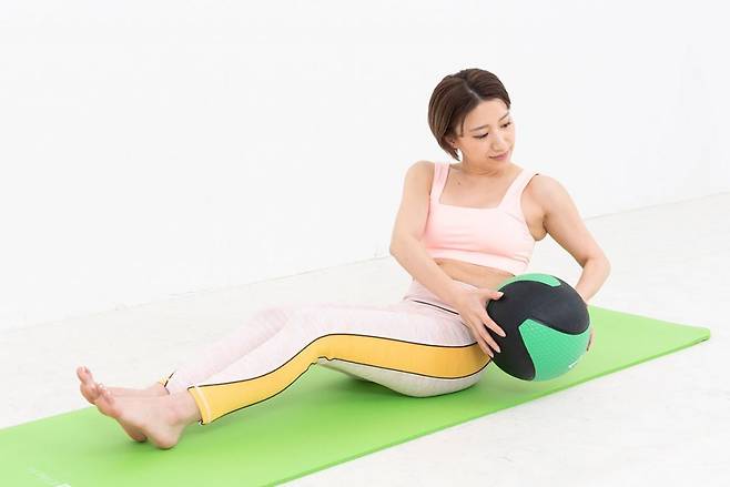 이 동작을 하면 허리 옆 라인이 더욱 날씬하게 정리되면서 탄탄한 코어가 완성된다.