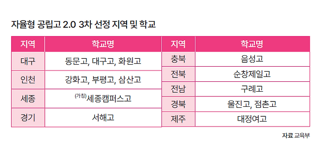 교육부는 11월 19일 ‘자율형 공립고 2.0 3차 공모 결과’를 발표하고 “이번에 선정한 학교를 포함한 자율형 공립고등학교가 지역 교육력 향상에 선도적인 역할을 하게 될 것으로 기대한다”고 밝혔습니다.