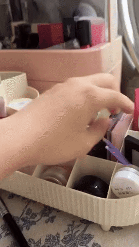 화장대 위에 올려져 있는 상자 옆에 짙은 색의 브러쉬가 세워져 있길래 집사는 그것이 화장용 브러쉬인 줄 알았죠.