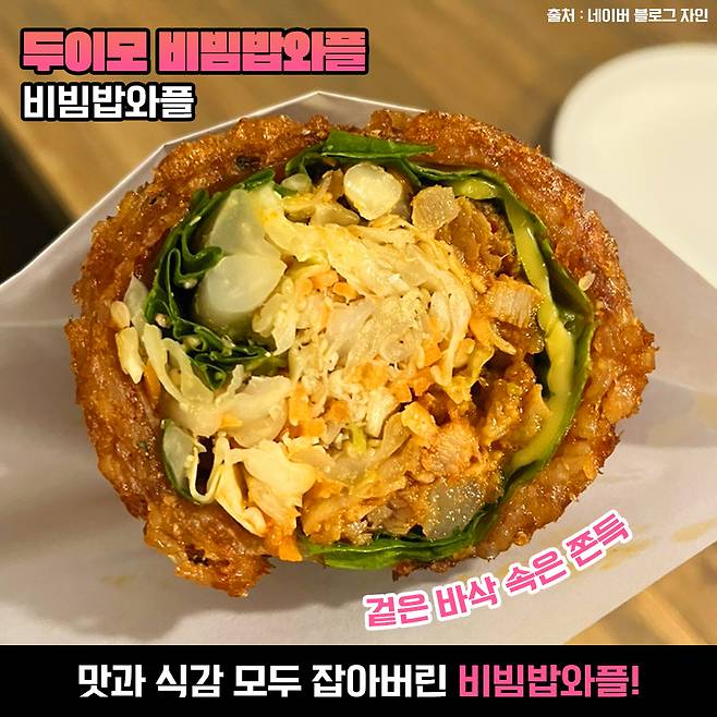 와플 기계에 눌러서 비빔밥이 누룽지처럼 딱딱하다고 생각이 든다면 NOPE! 바삭바삭 쫀득쫀득한 식감 덕분에 비빔밥 와플을 먹은 이이경님, 신봉선님께서 극찬을 한 맛집이었습니다~