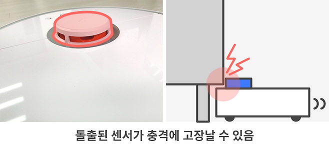 또한 돌출된 형태인데 내구성이 낮아 충격에 고장나는 경우가 종종 있으며, 내부 회전 모터나 레이저 모듈의 고장 후기도 있는 편입니다.