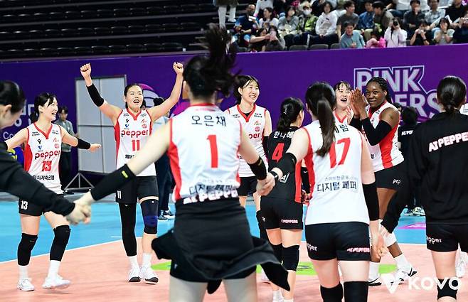 3세트 초반 흥국생명이 10-6으로 앞서며 반격을 예고했을 때도, 페퍼저축은행은 서두르지 않았다. 조이가 한 박자 빠른 퀵오픈으로 흐름을 끊었고, 박정아가 블로킹과 퀵오픈을 연속으로 성공시키며 상대 숨을 막았다. 그 사이 수비 라인은 비는 공간을 집요하게 메웠고, 리바운드 볼을 살리는 집중력이 살아나면서 무려 8연속 득점으로 14-10 역전에 성공했다. 이후에는 시마무라와 임주은의 블로킹이 다시 가세했고, 마지막은 예고편처럼 깔끔했다. 24-18에서 박정아의 차단으로 매치 포인트를 잡고, 조이의 오픈이 네트를 스치며 상대 코트에 꽂혔다. 이 팀답게, 이날의 상징답게, 속도와 높이와 정확함으로 마무리했다.