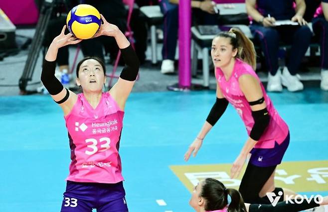 무대 중앙에는 복귀하자마자 팀의 무게중심을 잡아준 조이 웨더링턴이 있었다. 부상으로 데뷔가 미뤄졌던 조이는 1세트 중반 교체로 투입돼 리듬을 찾더니 3세트에는 선발로 나와 16점을 쓸어 담았다. 꼭 화려한 난타가 아니어도 공격 각을 깔끔히 만들고, 템포를 바꿔 상대 블로커 타이밍을 무너뜨리는 장면이 여러 차례 나왔다. 숫자만 보면 ‘최다 득점자’였지만, 더 중요한 건 그의 존재가 공격 루트를 풍성하게 만들었다는 사실이다. 레프트 이한비의 자신감 있는 오픈, 주장 박정아의 퀵오픈과 블로킹, 그리고 시마무라 하루요의 속공과 이동이 얽히며 파도가 겹치듯 몰려왔다. 시마무라가 13점, 이한비가 13점, 박정아가 10점. 한쪽에 쏠림 없이, 네 방향에서 공급된 득점이 흥국생명의 블로킹 라인을 흔들어댔다.