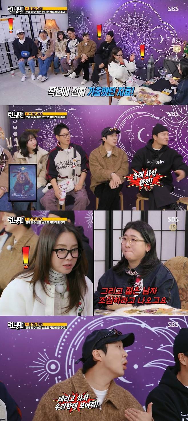이어 타로 전문가는 송지효의 연애운을 살펴보더니 "젊은 남자를 조심해라"고 경고했다. 갑작스러운 연하남 경보에 하하와 김종국은 "데리고 와서 우리한테 보여줘", "예쁘고 젊다고 다가 아니야. 연하 조심해라"며 여동생 단속에 들어가 웃음을 자아냈다.