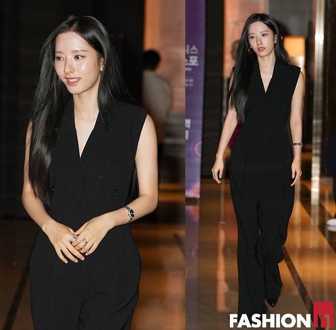 가수 겸 배우 김지연(우주소녀 보나)이 블랙 테일러드 점프수트룩으로 스포트라이트를 받았다.