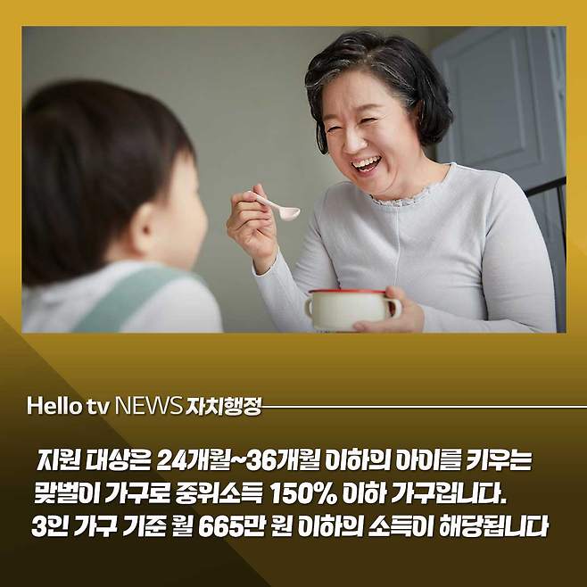 지원 대상은 24개월~36개월 이하 아이를 키우는 맞벌이 가구로