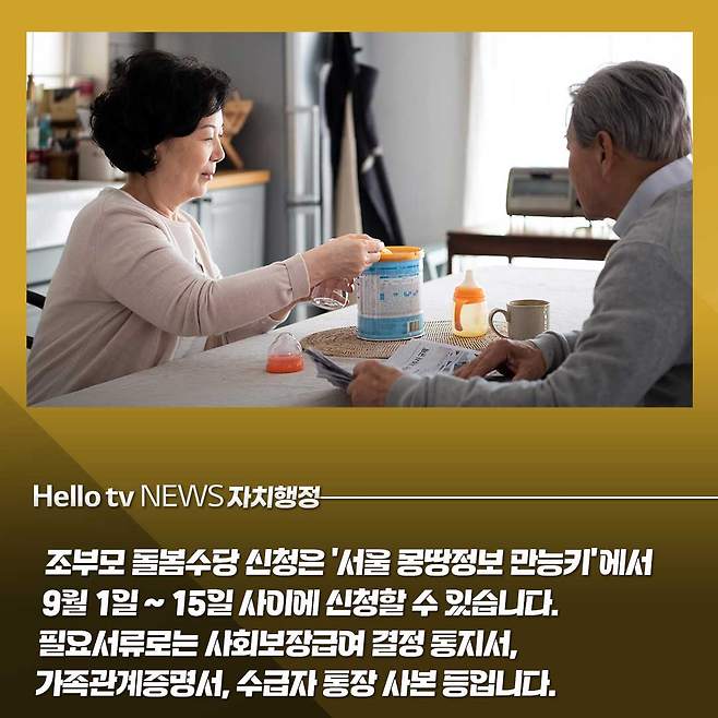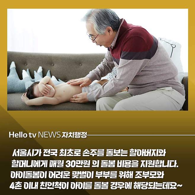 할아버지, 할머니에게 매월 30만원의 돌봄 비용을 지원합니다