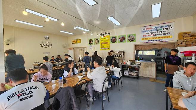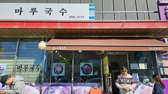 이름은 ‘마루국수’다. 마루국수는 김포 고촌농협 장곡지점 바로 건너편에 있다. 큰 도로에서 안쪽으로 좀 들어와야 하는 외진 곳에 있지만 항상 사람들로 붐빈다. 그만한 이유가 있다.