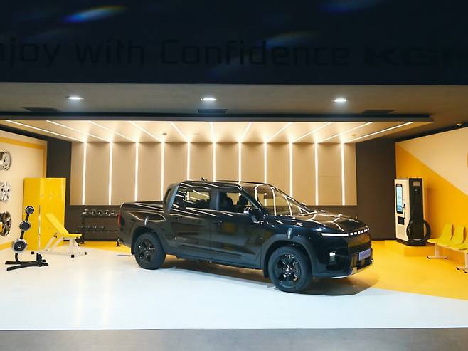 KG모빌리티의 전기 픽업트럭 ‘무쏘 EV AWD’가 국내 인증을 완료했다.