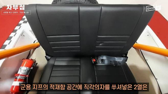 록스타의 2열은 이 차의 '군인정신'을 표현하는 소리없는 아우성과도 같았습니다. 록스타 2열 시트는 군용 지프의 적재함 공간에 '90도 직각 시트'가 들어가있는 각 잡힌 모습을 자랑하는데요, 지금은 물론 90년대에도 경악스러운 요소였습니다.