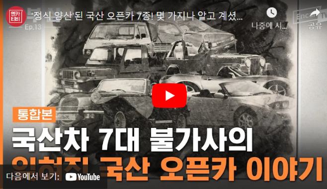 ▷'국산 오픈카' 만들었던 회사들의 소름돋는 공통점...? 영상으로 전하는 못다한 이야기! '잊혀진 국산 오픈카 이야기' 풀버전, 영상으로 보러가기! (클릭하시면 재생됩니다)