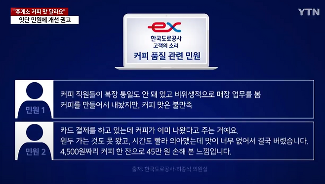 실제로 커피 품질에 불만을 제기하는 민원은 한국도로공사 홈페이지에 꾸준히 올라왔습니다.